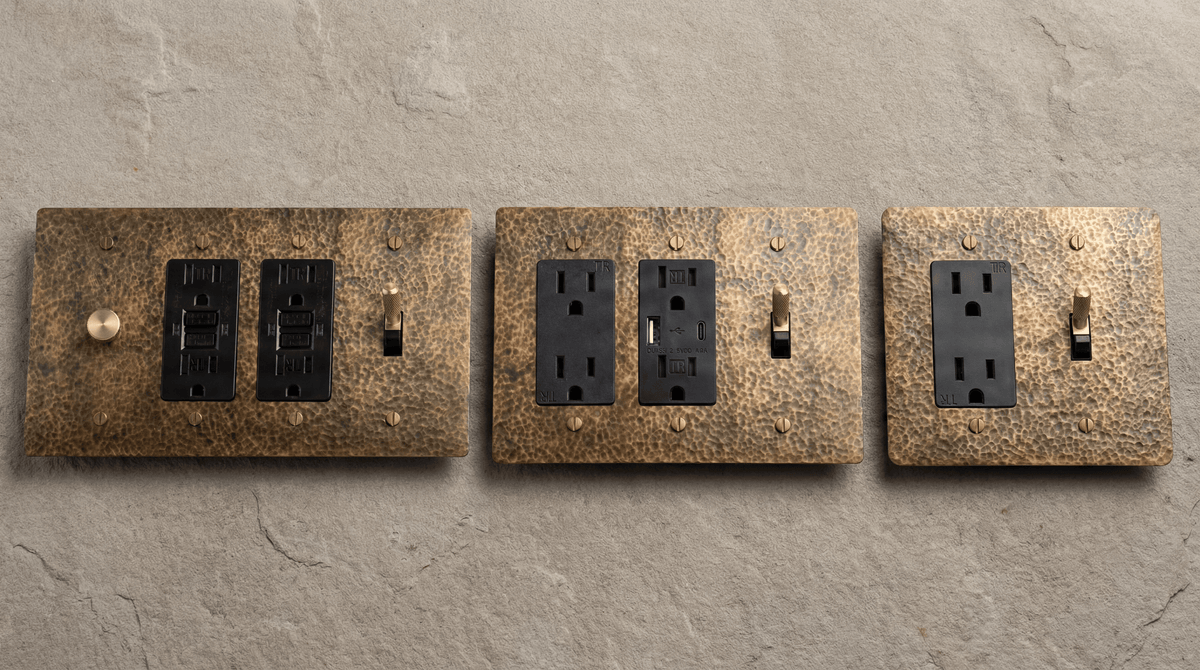 Choose from single, duplex, GFCI, and USB outlet options. Combine outlets with our signature toggle switches in 2-gang configurations. Each outlet ships with matching brass mounting screws and is designed for compatibility with standard US electrical boxes, simplifying installation.