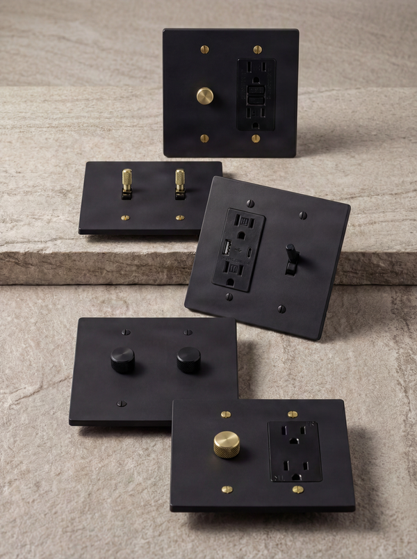Our bold matte black 2 gang light switches bring craftsmanship and style together. Each plate is machined from solid brass and built to last for generations.