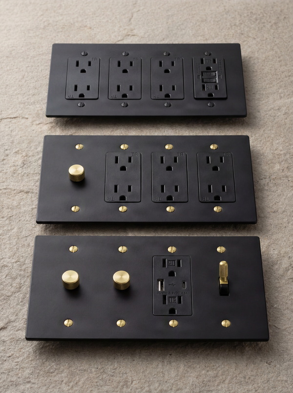 Our matte black 4 gang outlets offer a bold, modern touch for any room. These outlets provide a sleek and durable solution for your electrical needs.