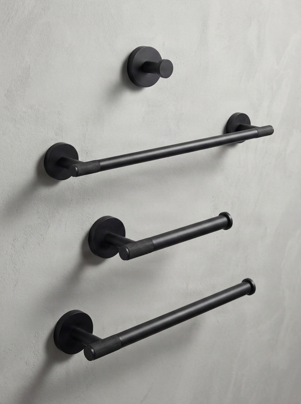 Create a cohesive look throughout your home by coordinating your matte black bathroom hardware with our matte black door hardware and switch plates. Our consistent finishes ensure a seamless transition between rooms, reflecting a unified design aesthetic.