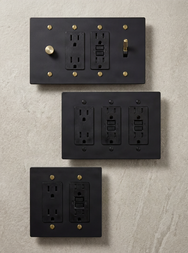 Choose from standard 15A duplex receptacles, GFCI outlets, and USB-A/C charging outlets. We also offer 2-gang outlet plates and combination options with toggle or dimmer switches. All outlets are compatible with standard US electrical boxes for easy installation.