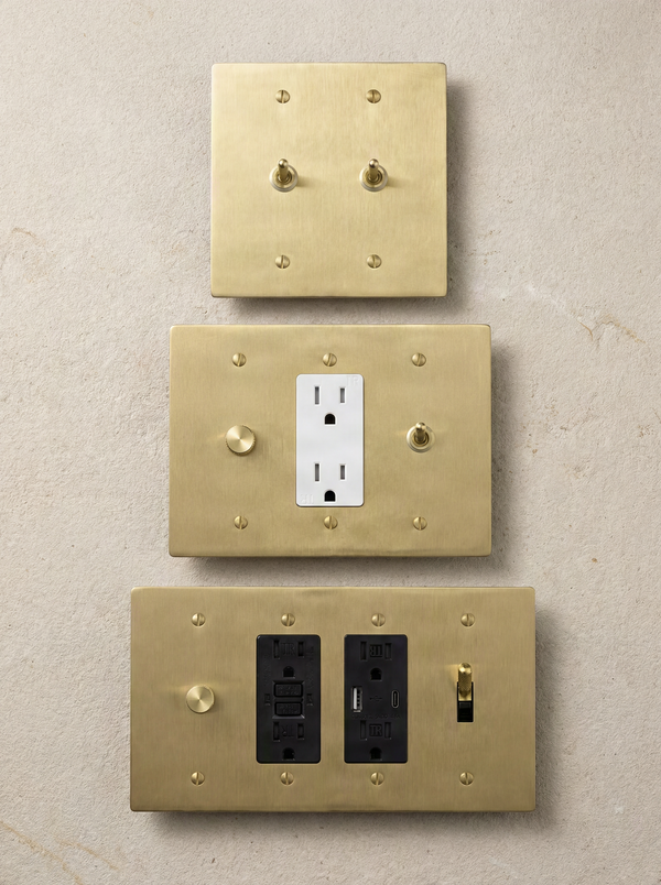 Create a cohesive design throughout your home with matching satin brass light plates and outlets. Our satin brass finish extends across our entire hardware collection, allowing you to unify your lighting, electrical with a consistent, refined aesthetic.