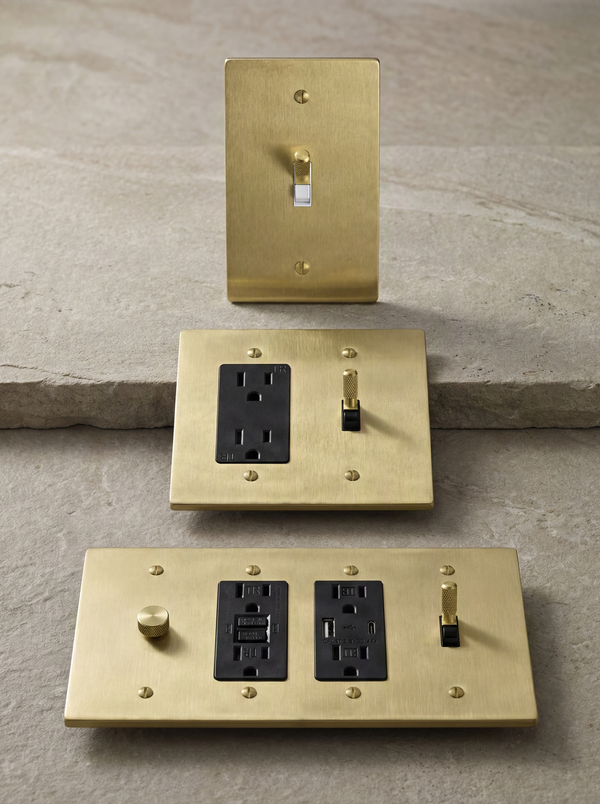 Our satin brass toggle switches offer a touch of understated elegance to any room. Each switch features solid brass construction and is designed for decades of reliable use.