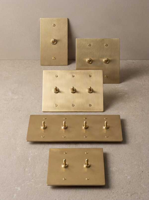 Our satin brass vintage toggle switches add a touch of timeless sophistication to any space. Available in multiple configurations, these switches are crafted from solid brass and built to last.