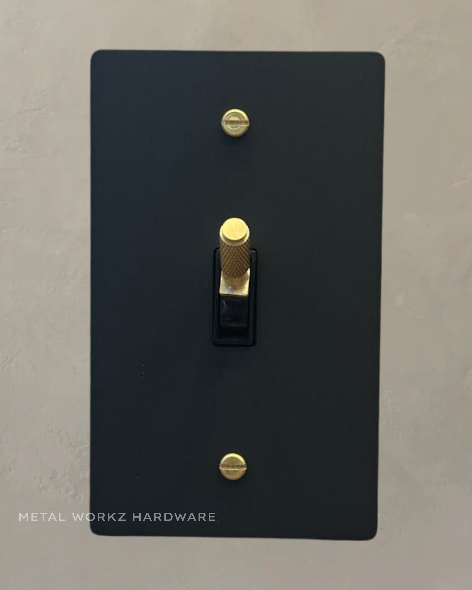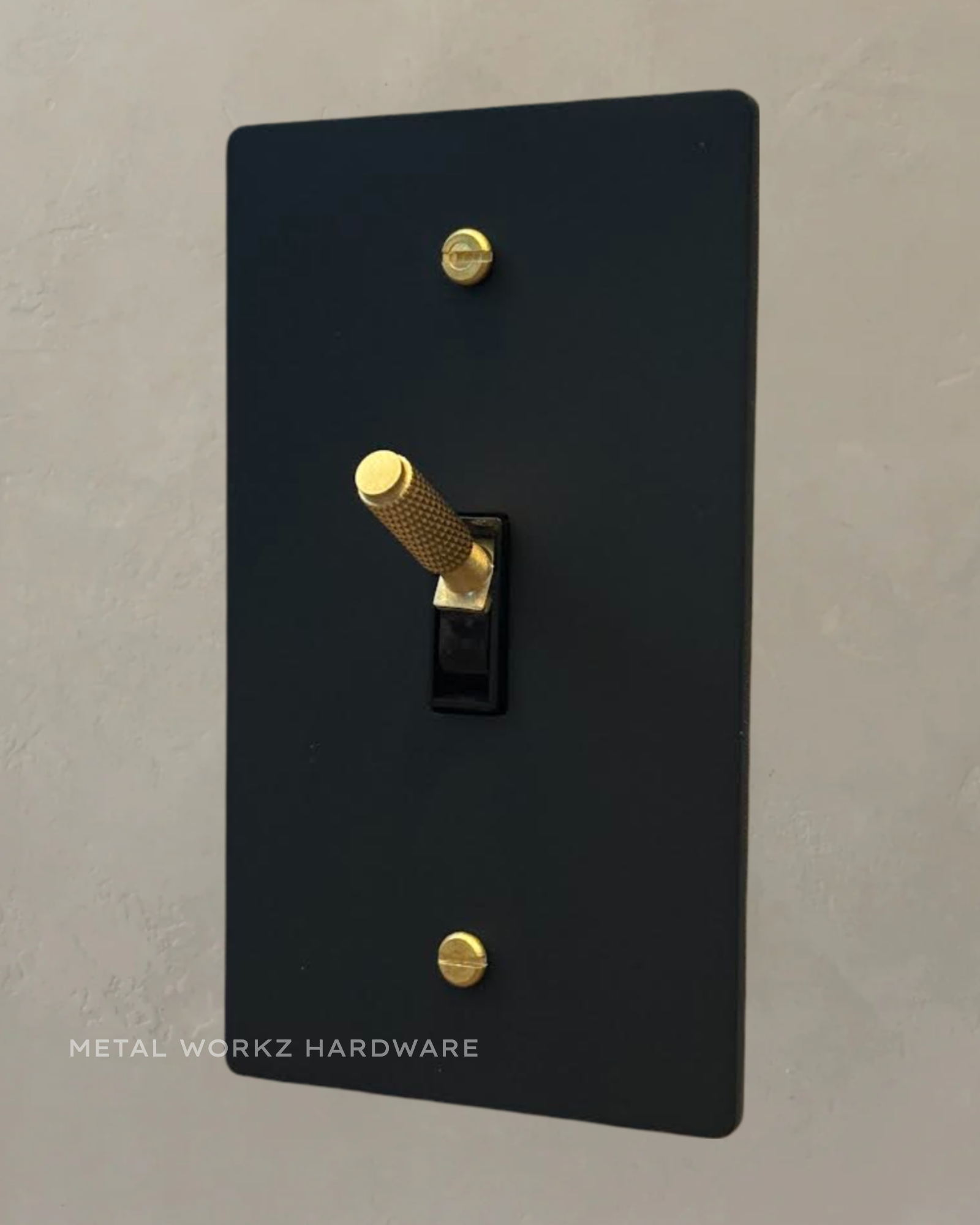 Perfect blend of timeless elegance and modern functionality designed to elevate the aesthetic of any room. Crafted from high-quality brass with an exquisite black finish, this switch offers a touch of vintage charm while providing the utmost in durability and performance. The toggle switch features a knurled textured toggle switch with a classic lever mechanism that ensures a satisfying click with every use, embodying the perfect marriage of traditional design and contemporary reliability. Designed with both aesthetics and functionality in mind. Easy to install, fitting seamlessly into standard wall boxes. It is compatible with most lighting systems, making it a versatile choice for both renovation projects and new constructions. This switch can be wired for either a 3-way or single pole function. Elevate any room with this statement piece that is built to last a lifetime.