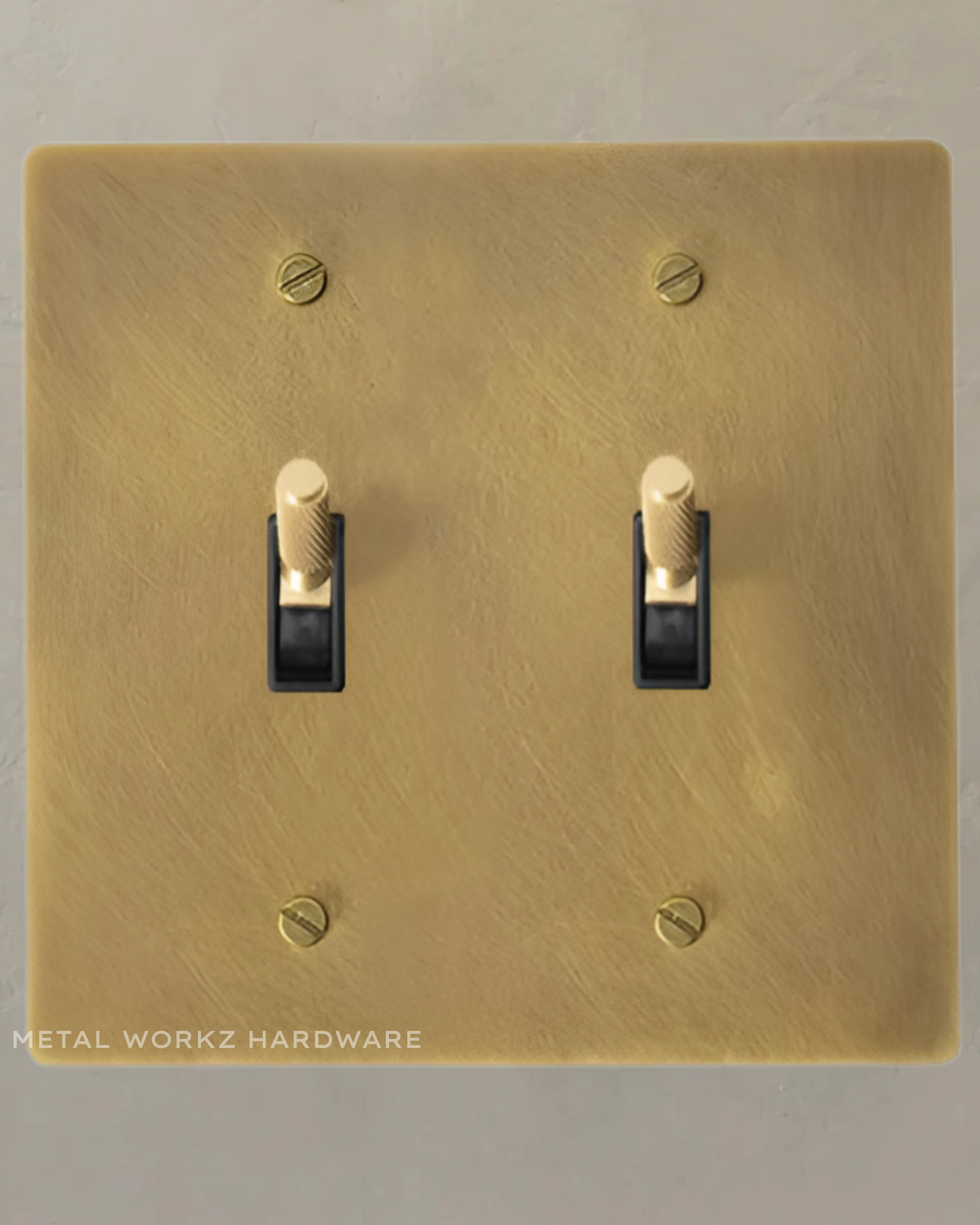 Brass Modern Toggle Light Switch (2-Gang) Aged Patina Brass With Black Module