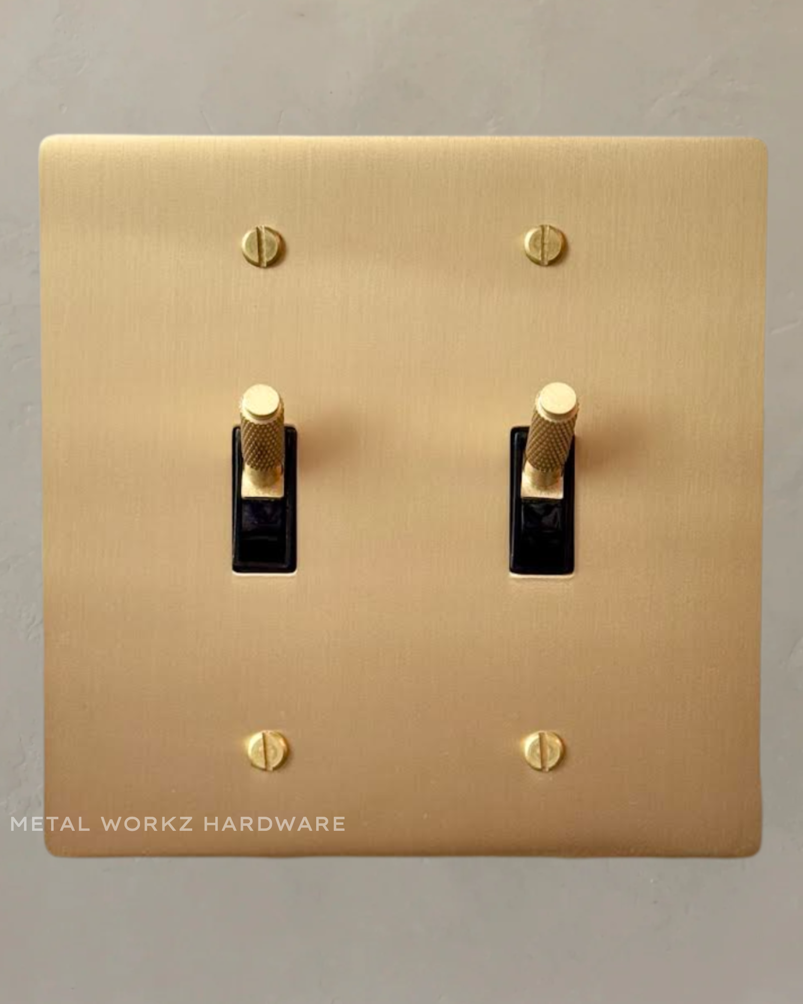 Brass Modern Toggle Light Switch (2-Gang) Brass With Black Module