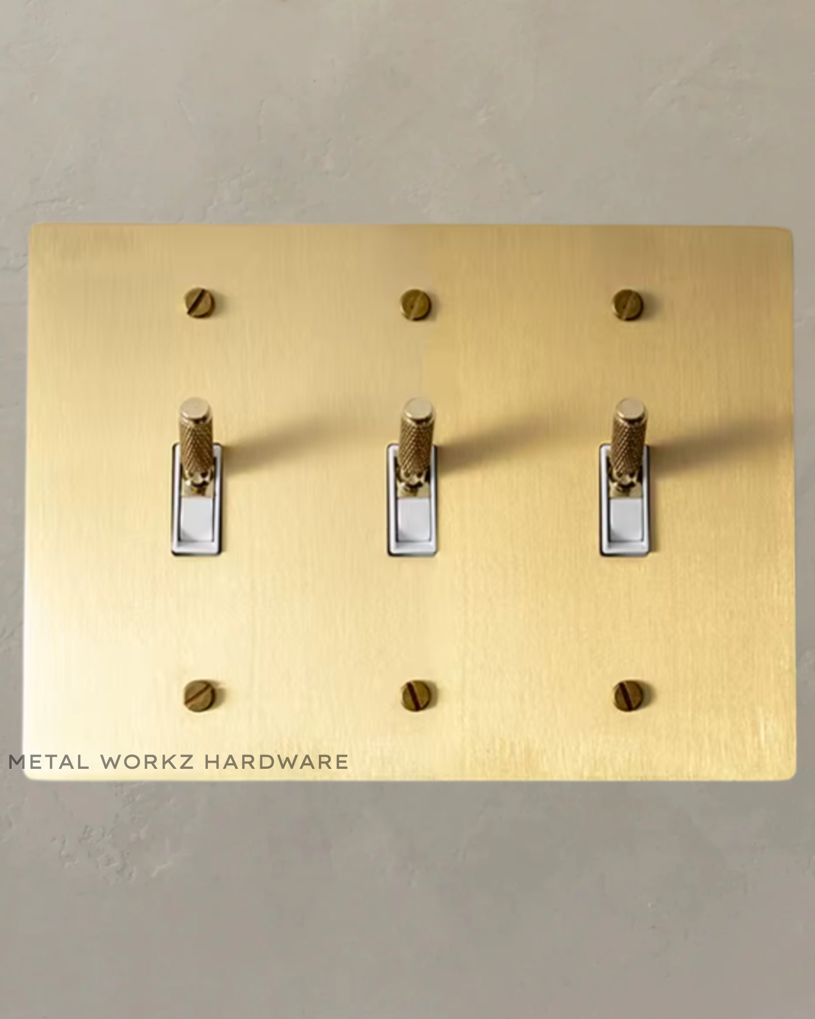 Brass Modern Toggle Light Switch (3-Gang) Brass With White Module
