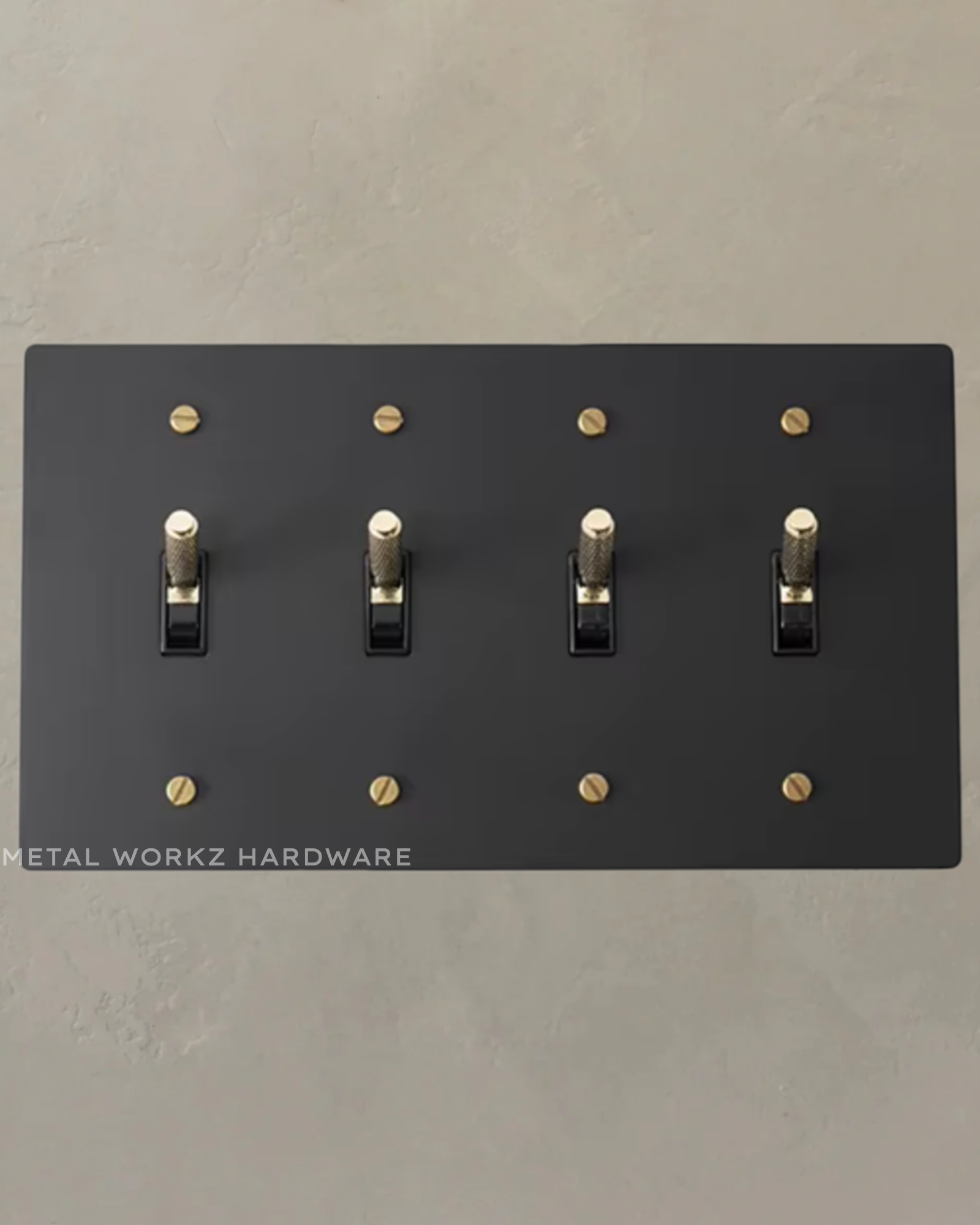 Brass Modern Toggle Light Switch (4-Gang) Black + Brass With Black Module
