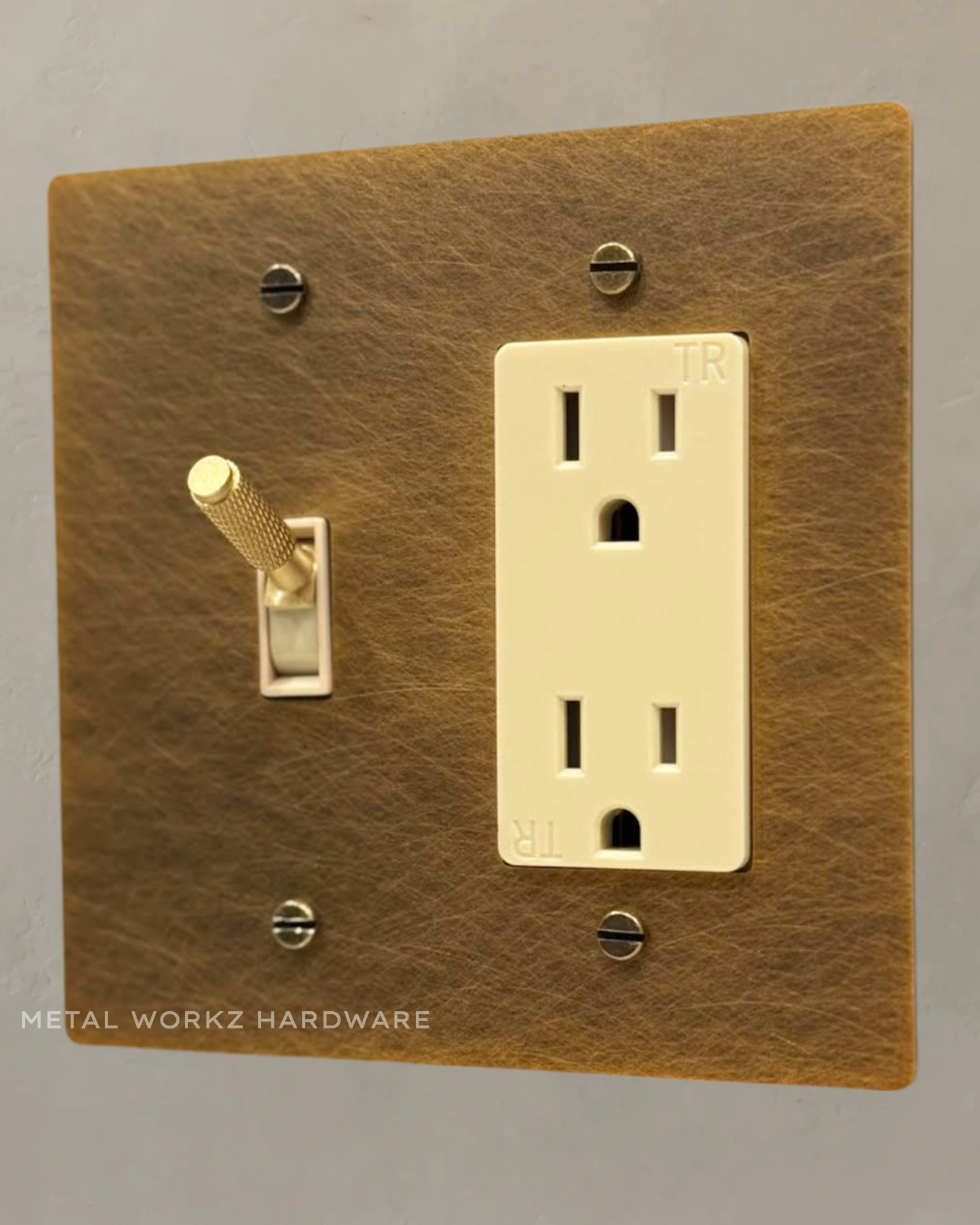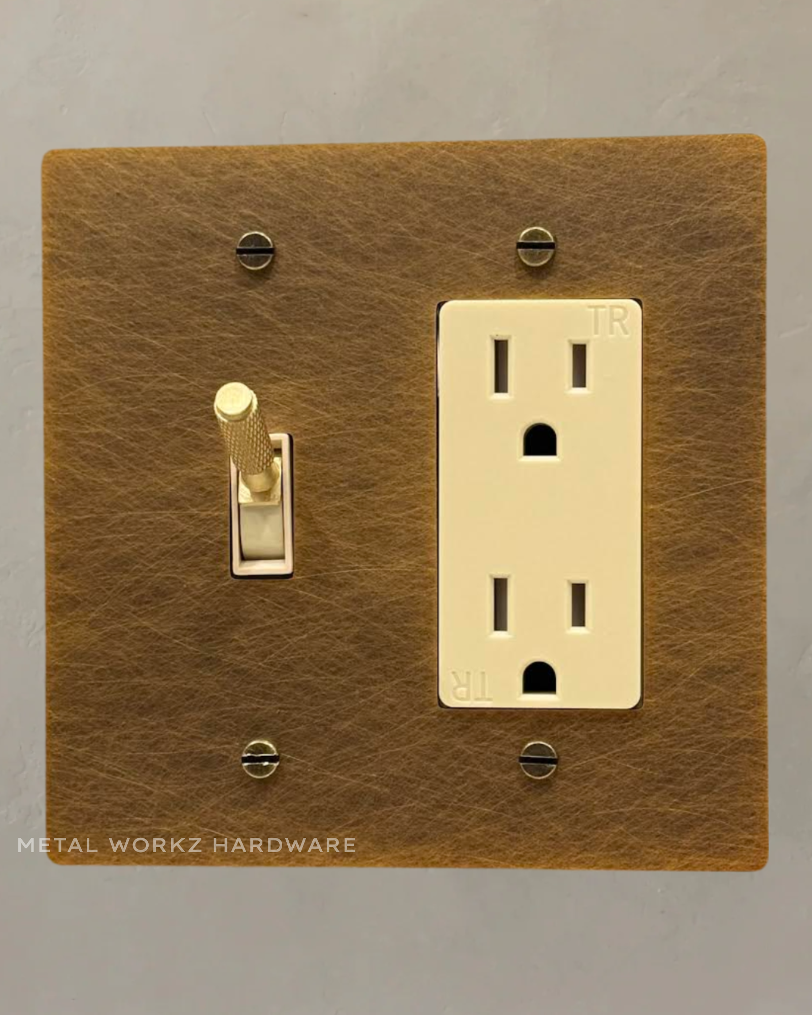 Brass Modern Toggle Light Switch + Duplex Outlet (2-Gang) Aged Patina Brass With Ivory Module