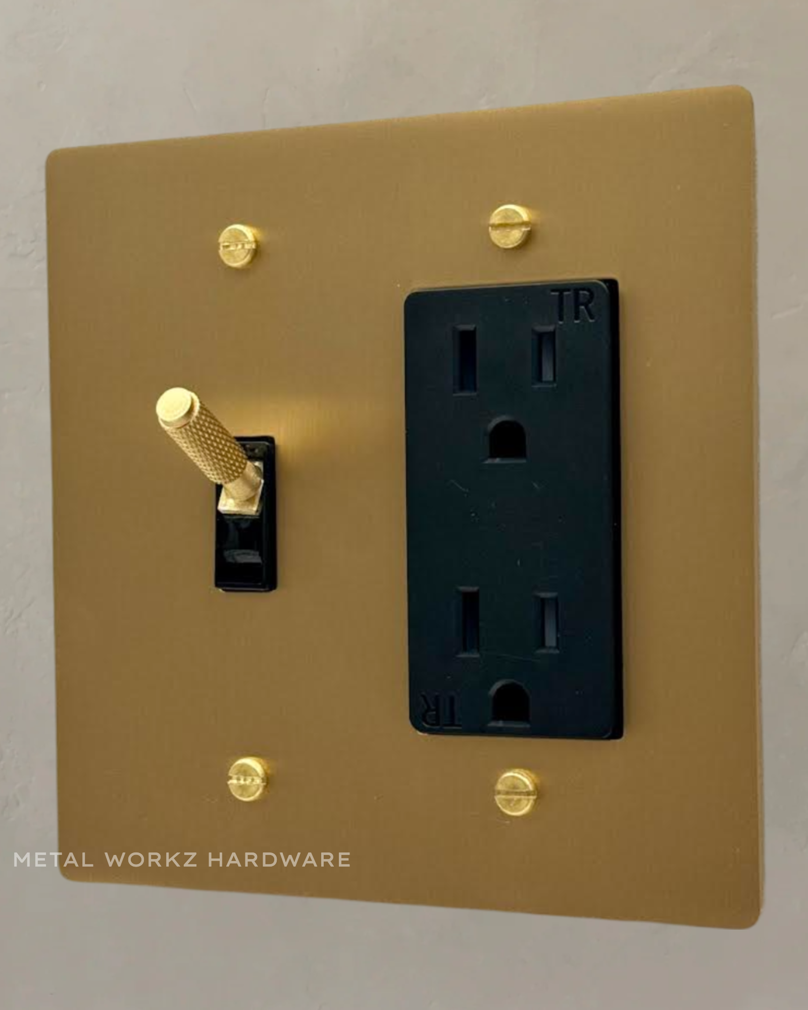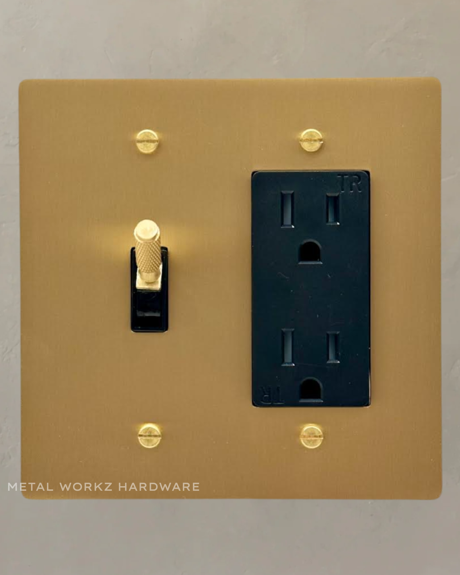 Brass Modern Toggle Light Switch + Duplex Outlet (2-Gang) Brass With Black Module