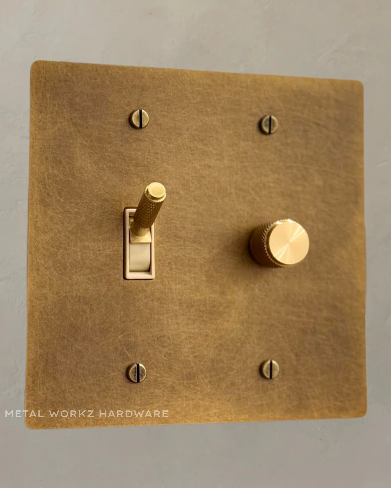 Brass Modern Toggle Light Switch + Rotary Dimmer Switch (2-Gang) Aged Patina Brass With Ivory Module