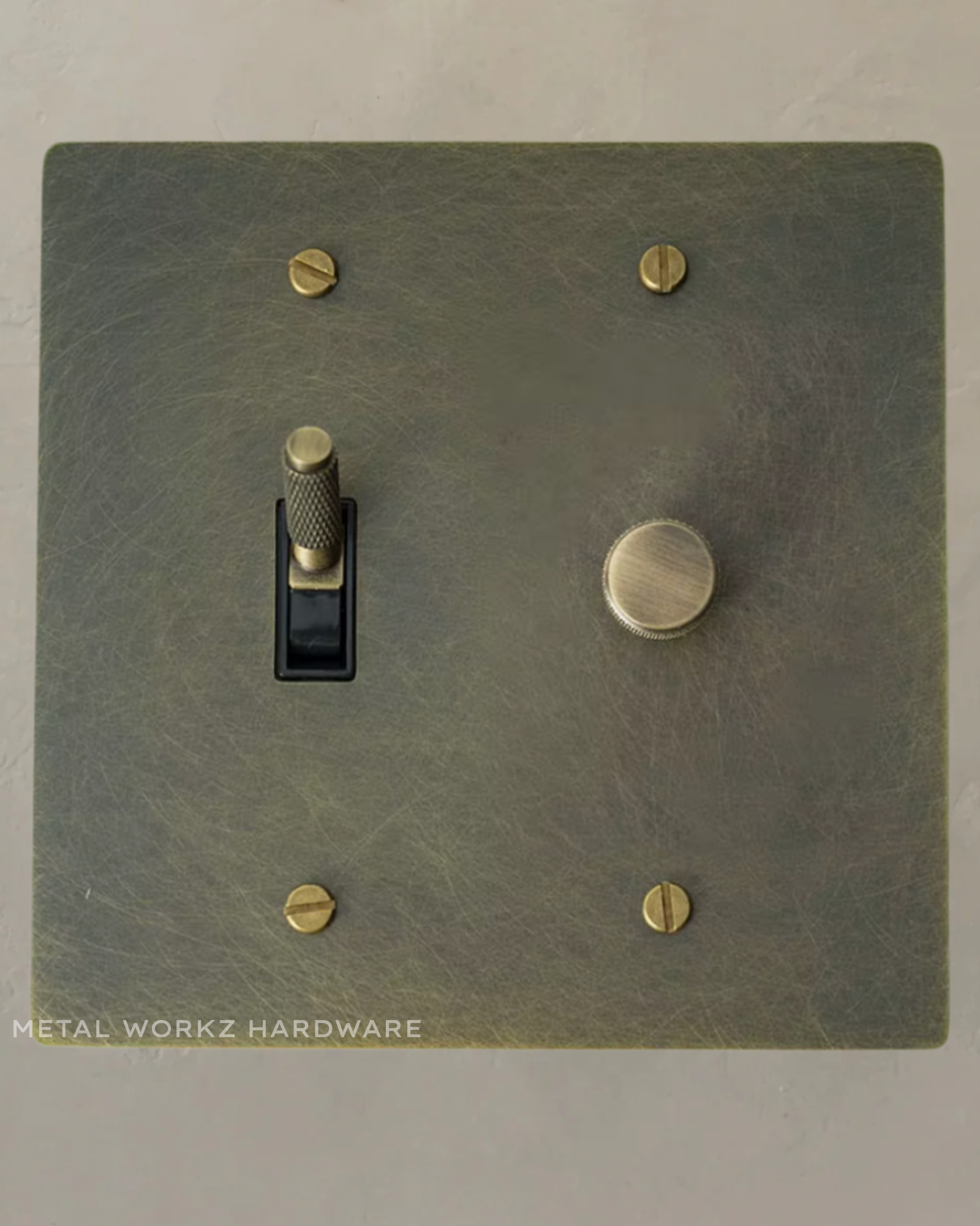Brass Modern Toggle Light Switch + Rotary Dimmer Switch (2-Gang) Antique Bronze With Black Module