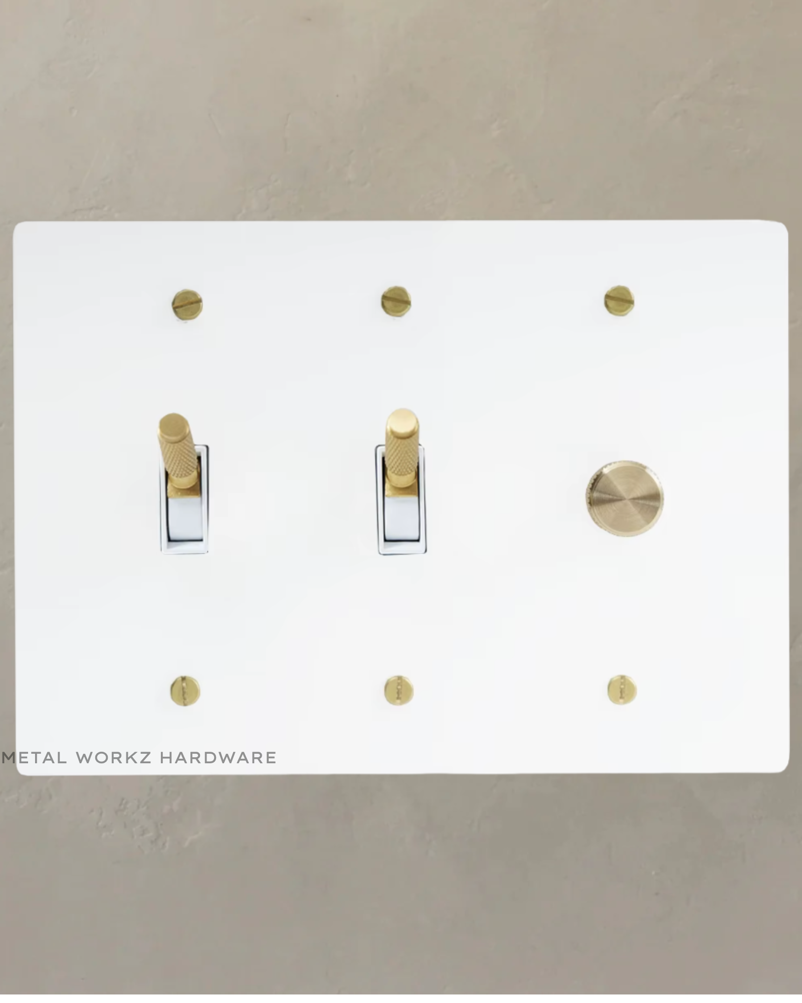 Brass Modern Toggle Light Switches + Rotary Dimmer Switch (3-Gang) White + Brass With White Module