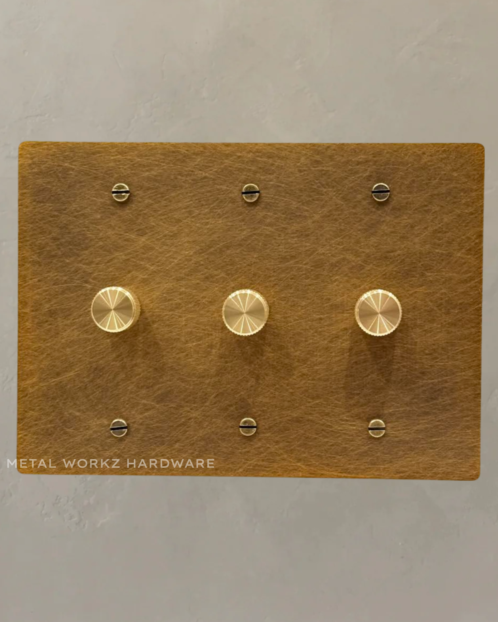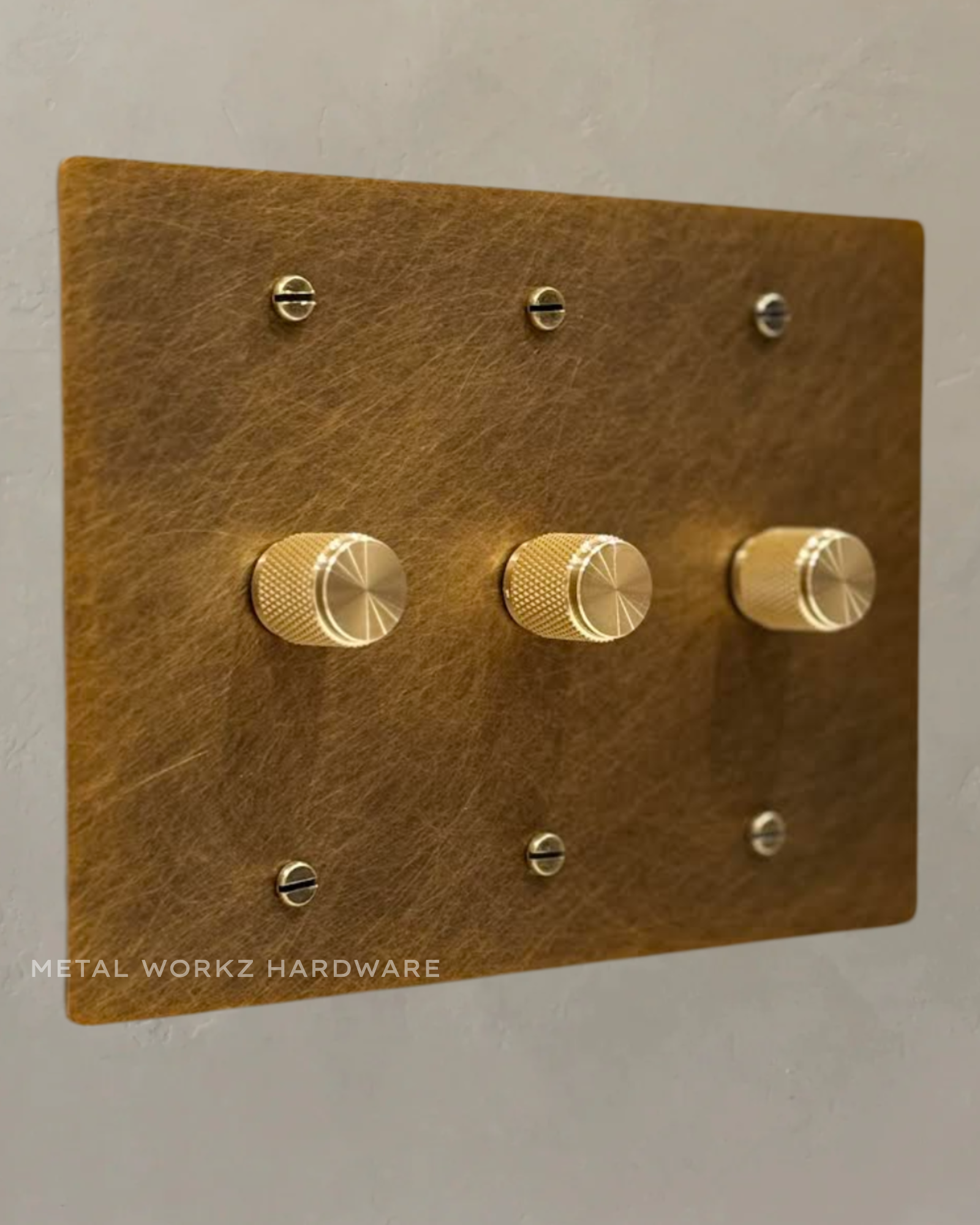 Brass Rotary Dimmer Switch (3-Gang) Aged Patina Brass