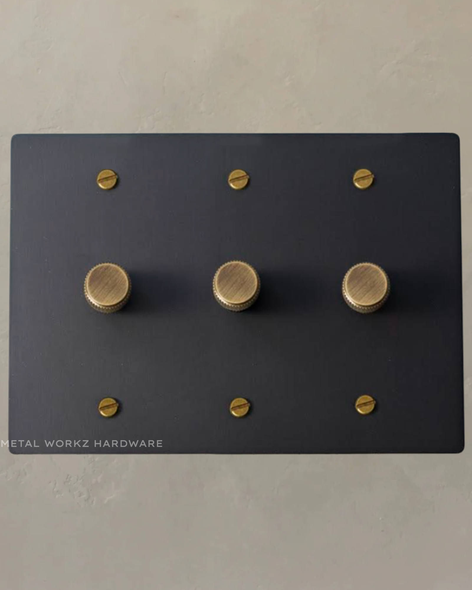 Brass Rotary Dimmer Switch (3-Gang) Black + Antique Bronze