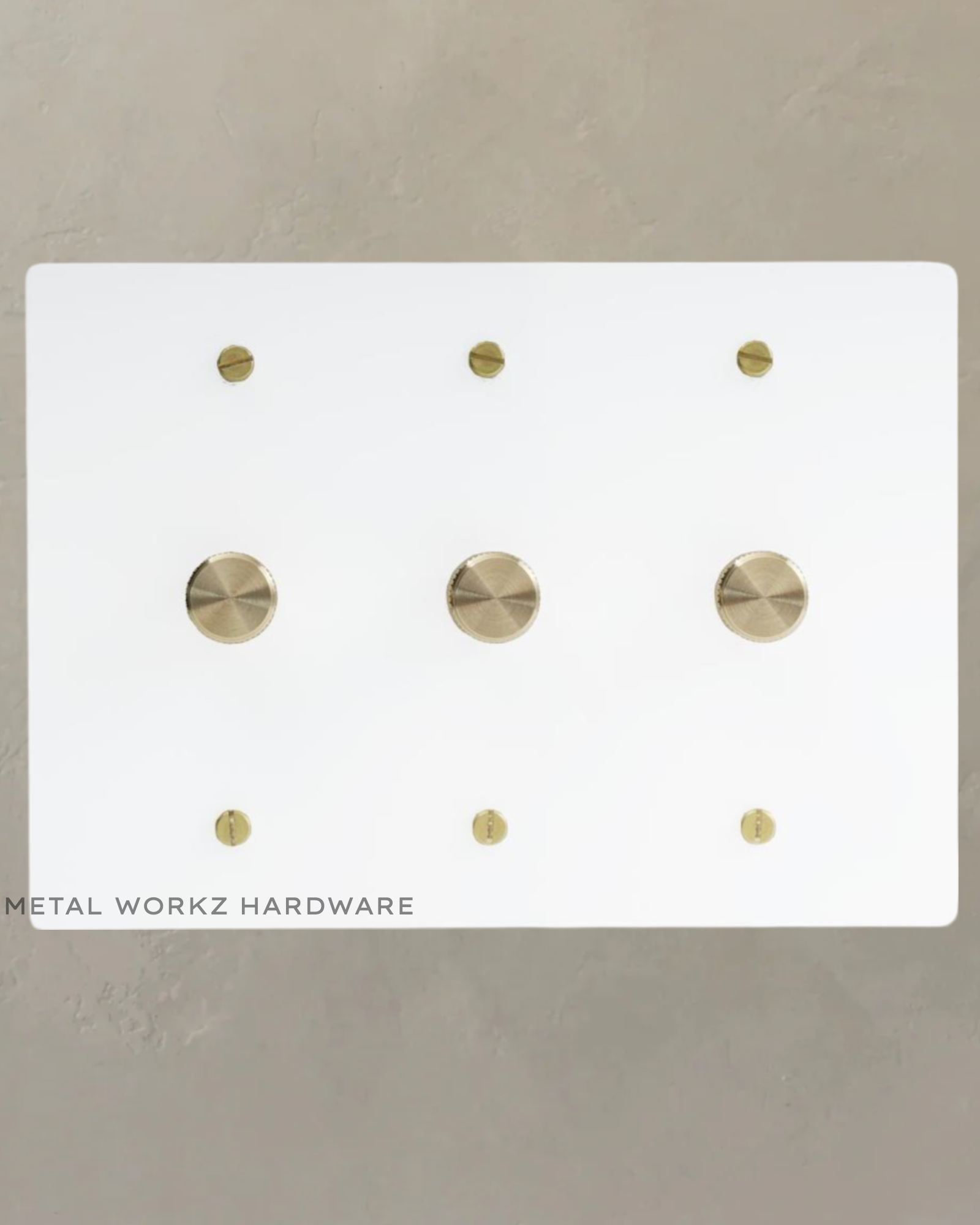 Brass Rotary Dimmer Switch (3-Gang) White + Brass