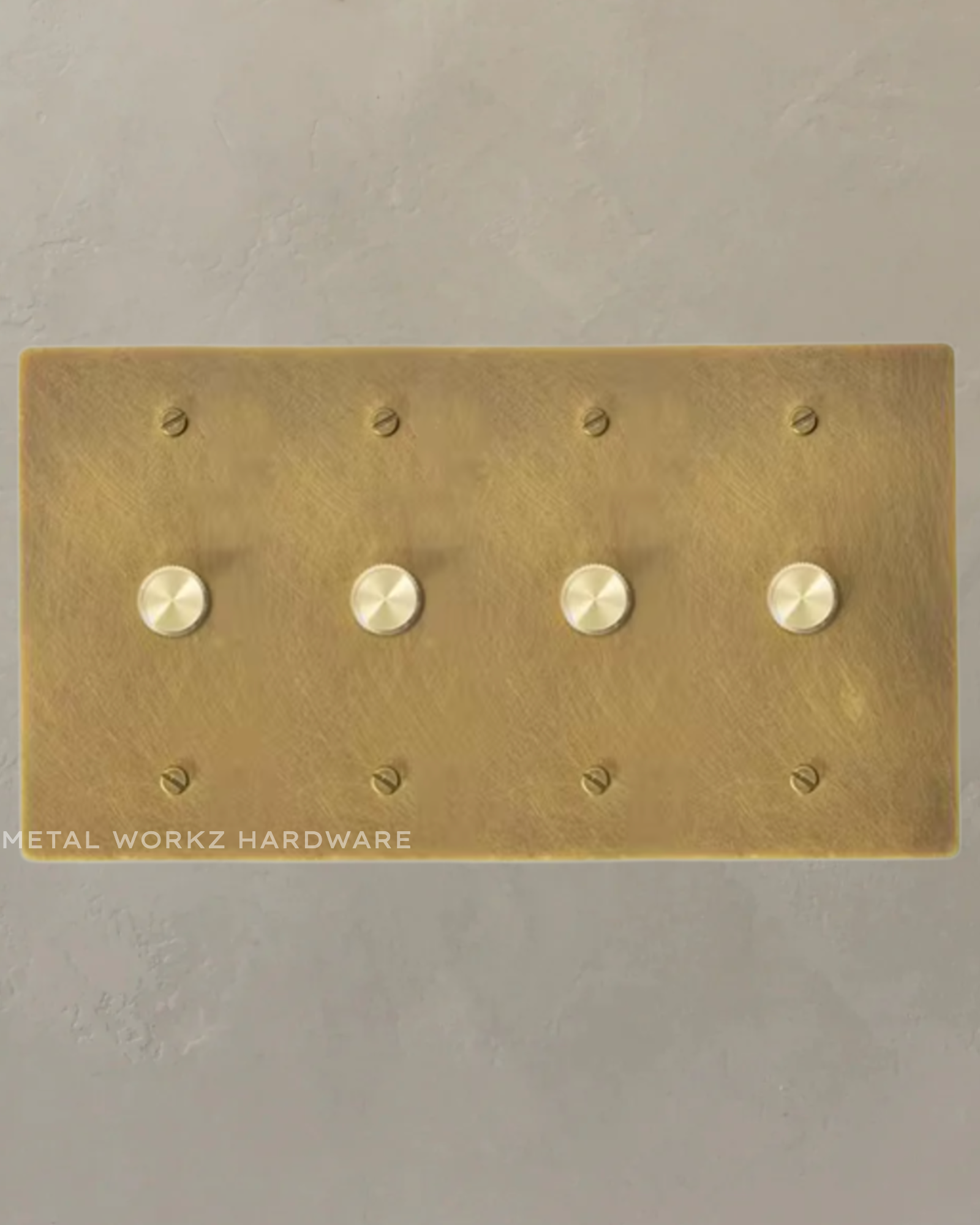 Brass Rotary Dimmer Switch (4-Gang) Aged Patina Brass