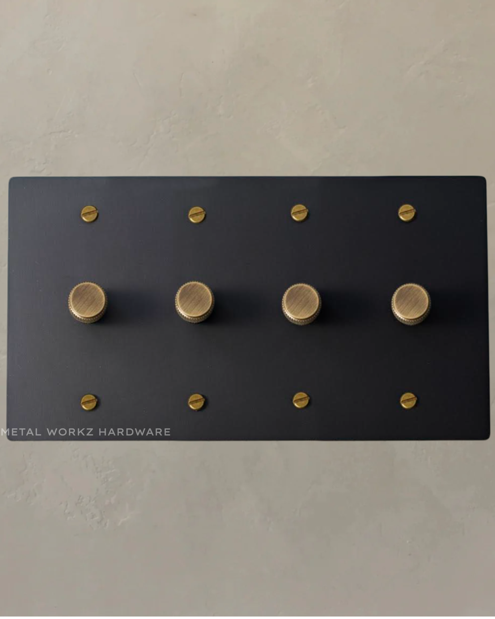 Brass Rotary Dimmer Switch (4-Gang) Black + Antique Bronze