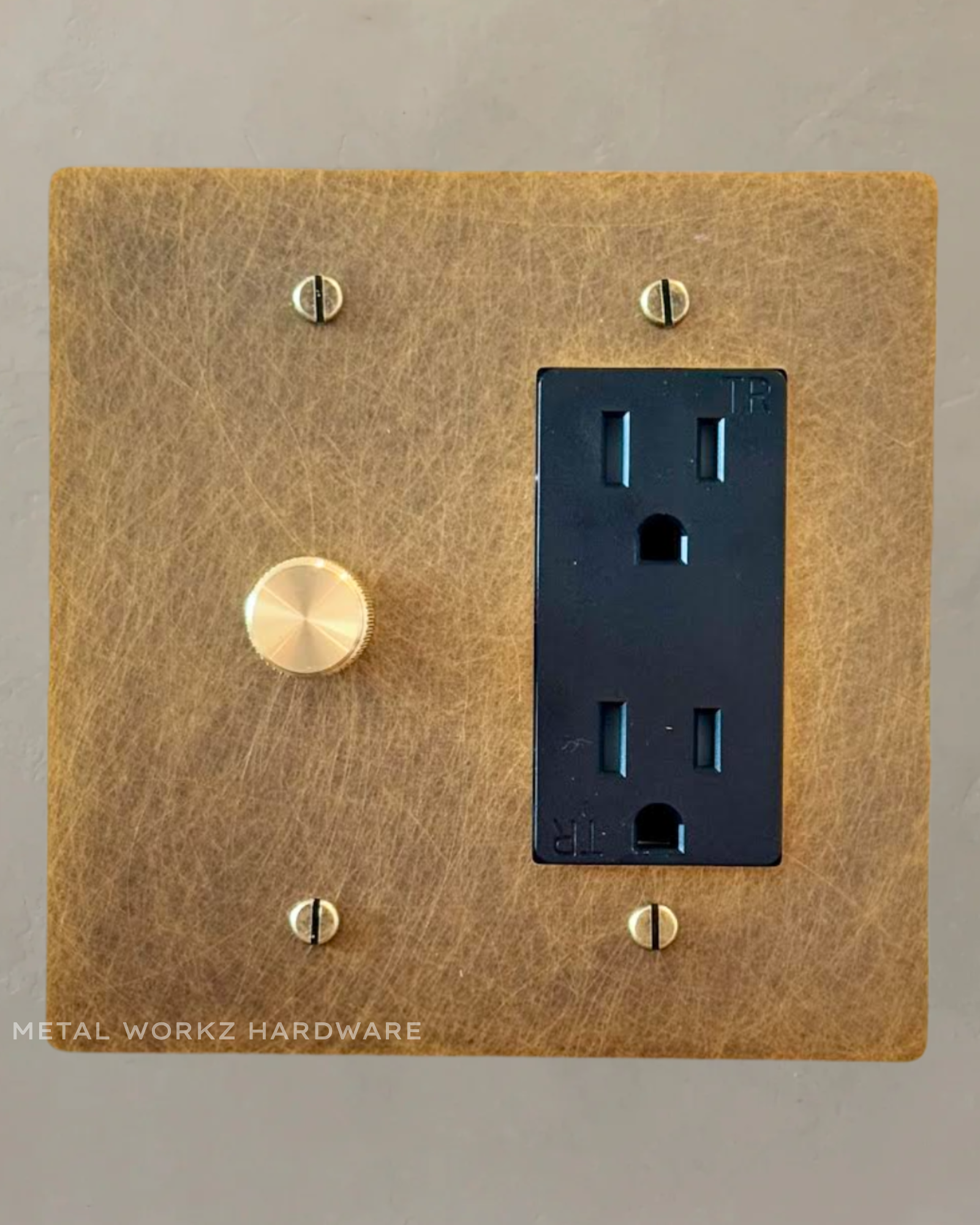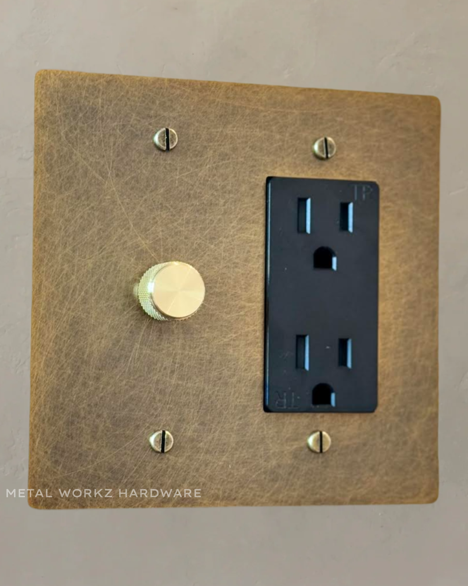 Brass Rotary Dimmer Switch + Outlet (2-Gang) Aged Patina Brass With Black Module
