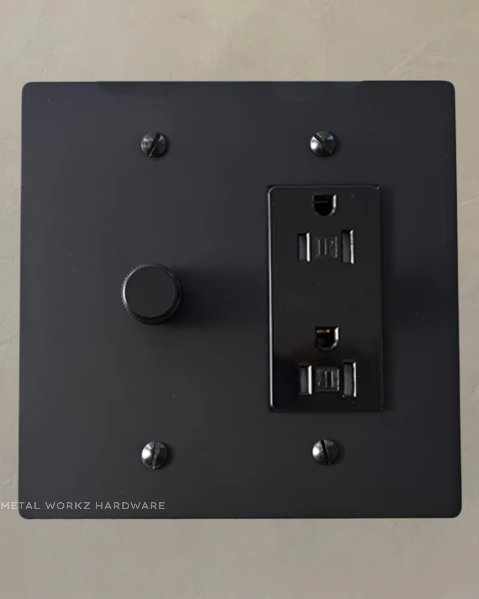 Brass Rotary Dimmer Switch + Outlet (2-Gang) Black With Black Module