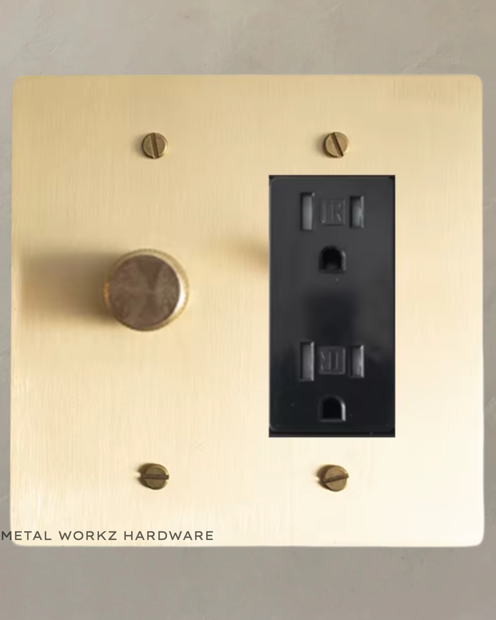 Brass Rotary Dimmer Switch + Outlet (2-Gang) Brass With Black Module
