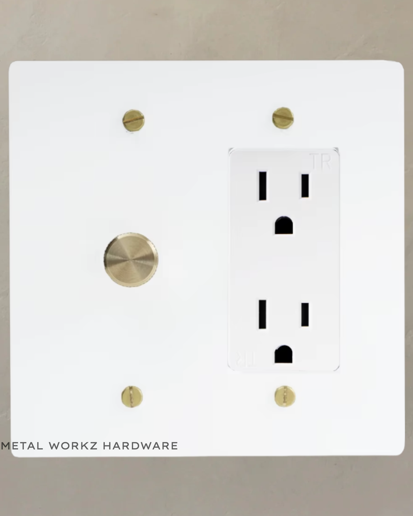 Brass Rotary Dimmer Switch + Outlet (2-Gang) White + Brass With White Module