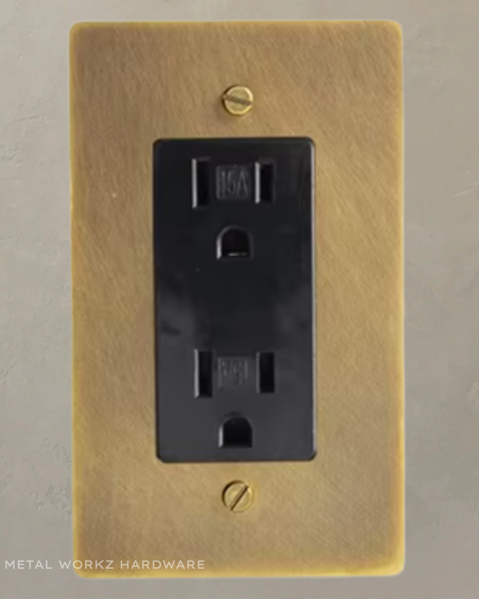 Brass Standard 15A Duplex Electrical Power Outlet (1-Gang) Aged Patina Brass With Black Module