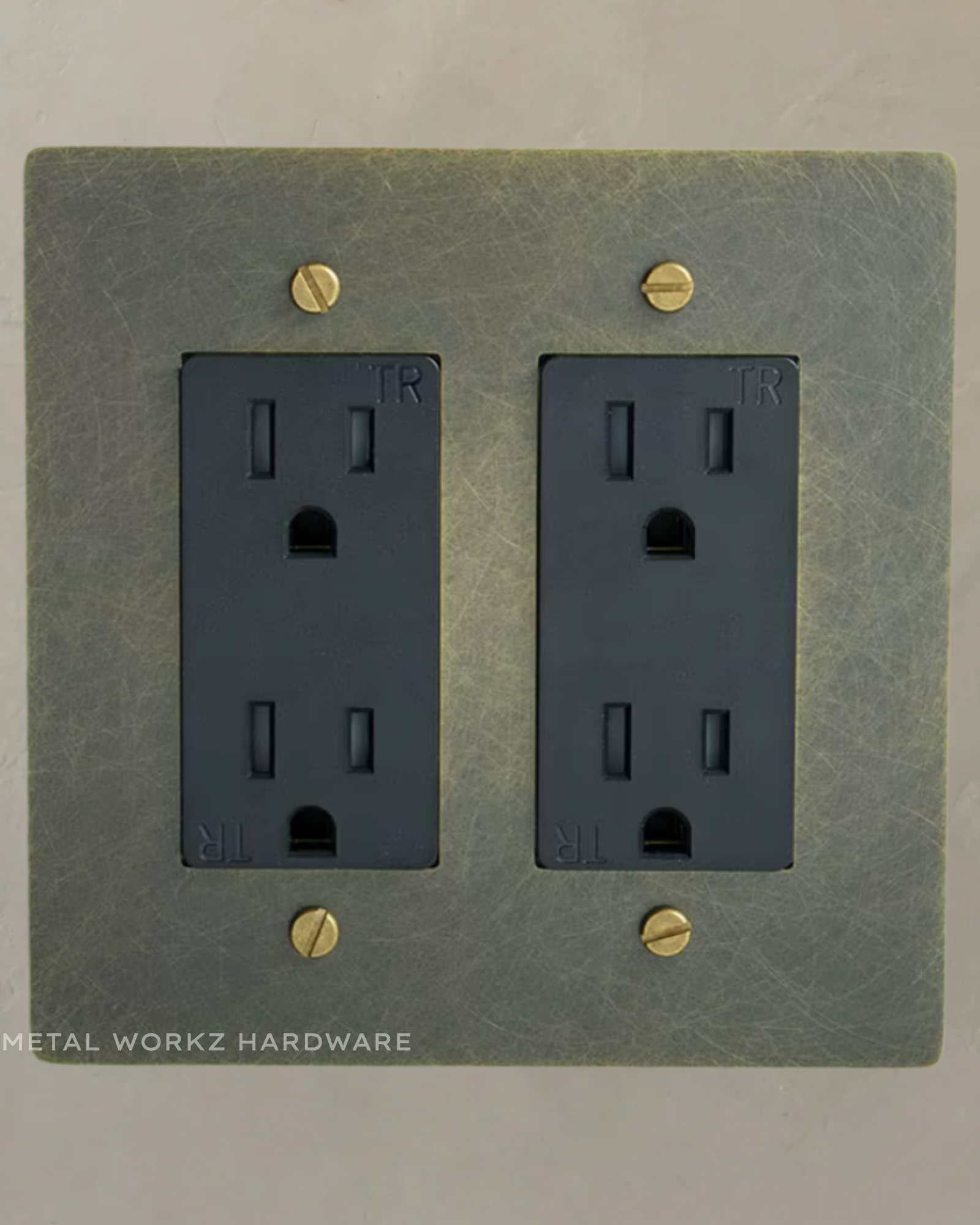 Brass Standard 15A Duplex Electrical Power Outlet (2-Gang) Antique Bronze With Black Module