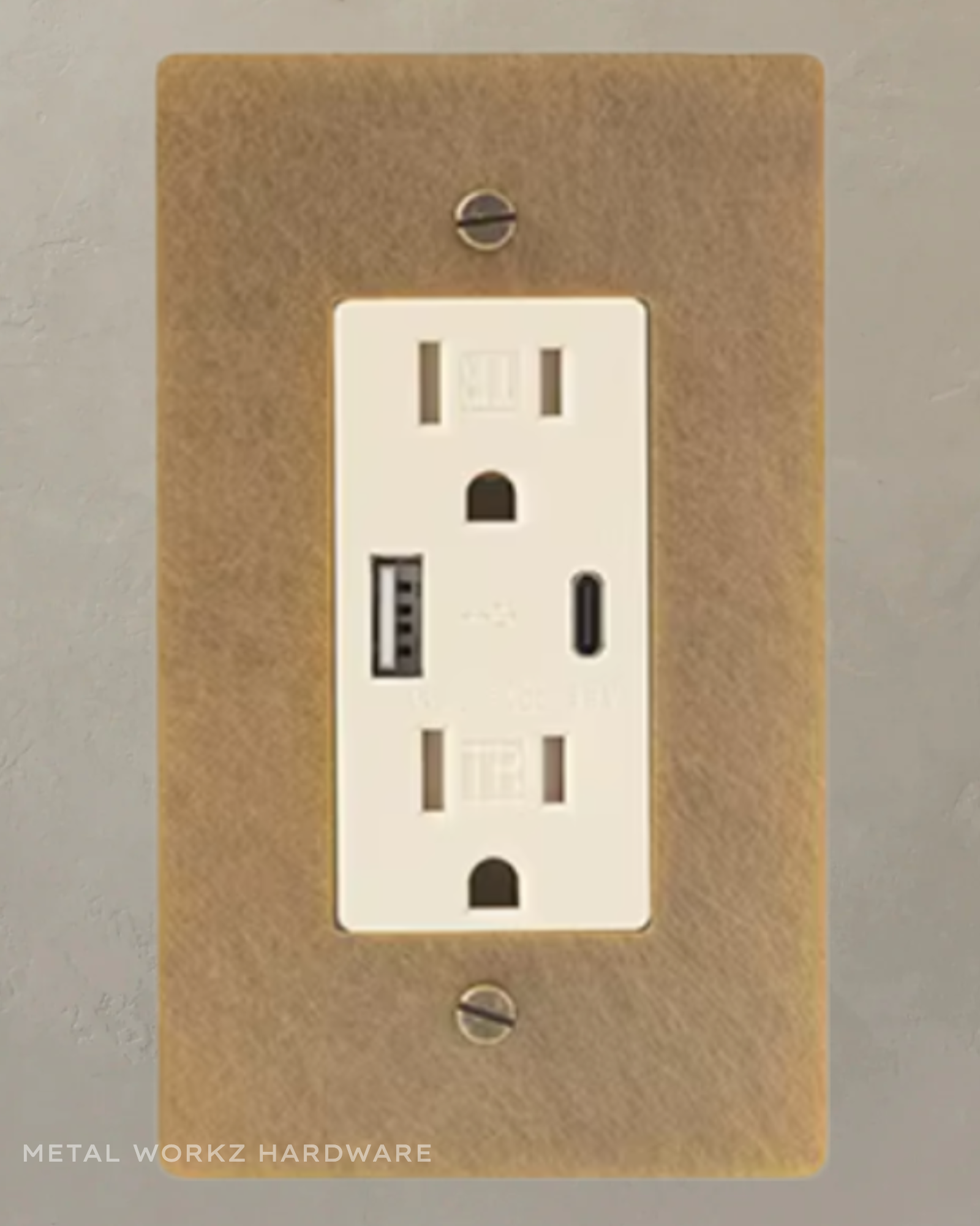 Brass USB/ Type C Duplex Electrical Power Outlet (1-Gang) Aged Patina Brass With Ivory Module