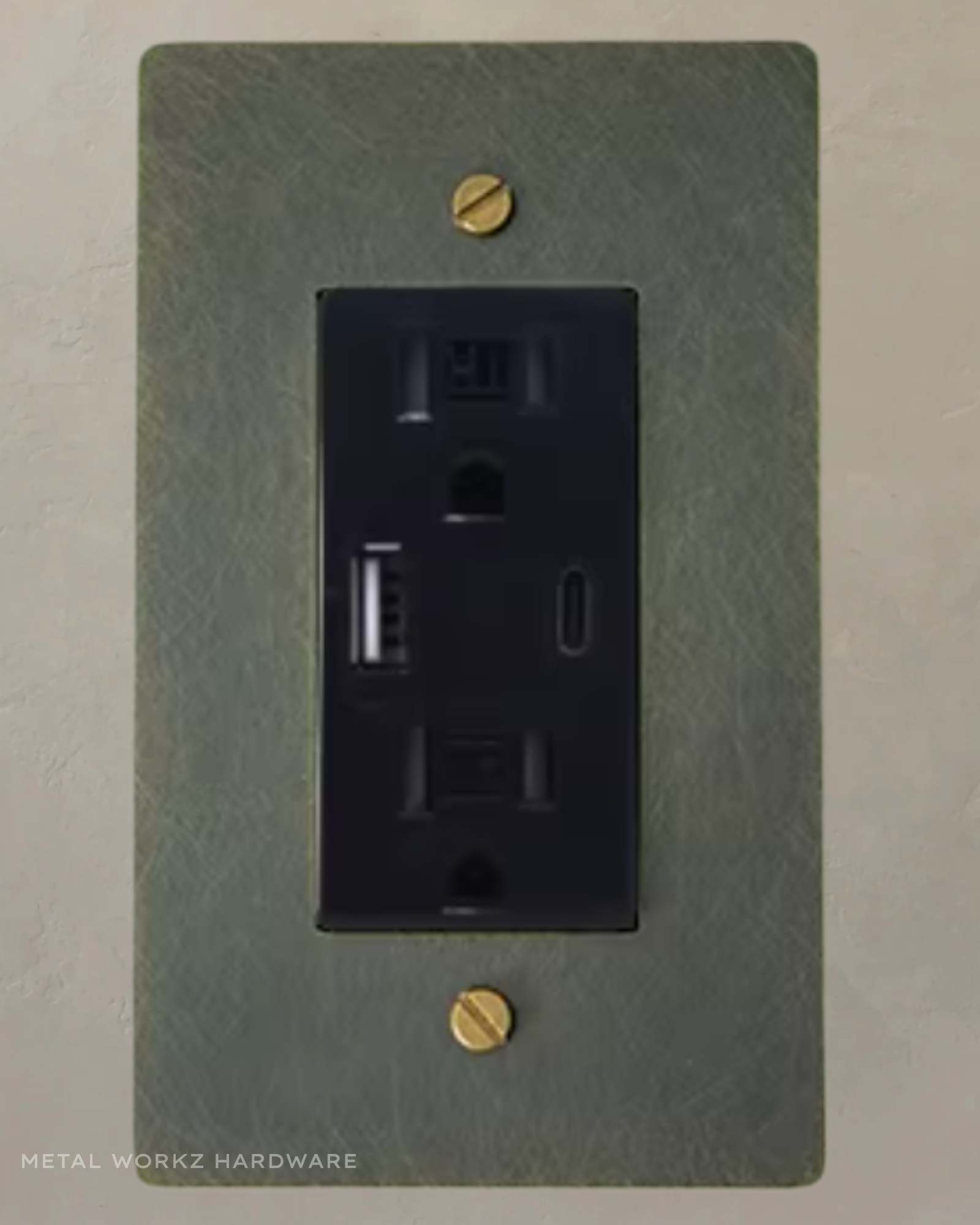 Upgrade your home with our Solid Metal Brass USB/ Type C Duplex Electrical Outlet. Made from high-quality brass, this modern outlet is not only durable but also adds a touch of elegance to any room. With multiple options to choose from, including standard 15A, GFCI, and USB/Type C outlets, you can customize your electrical needs. Keep your family safe with the tamper-resistant design. Pair them up with our dimmer and toggle switches in matching finishes.