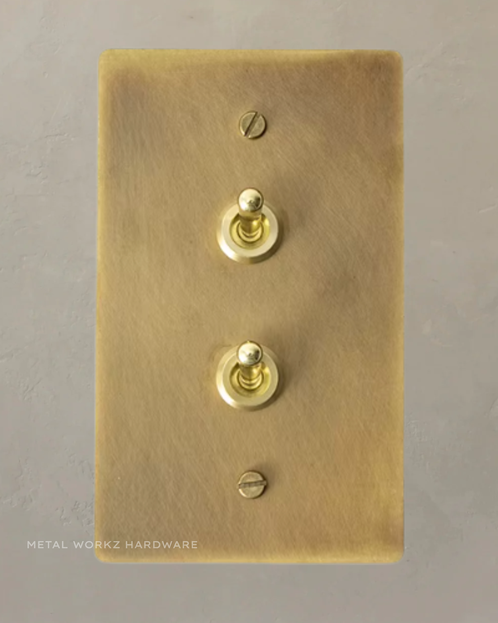 Brass Vintage Stacked Toggle Light Switch (2-Gang) Aged Patina Brass