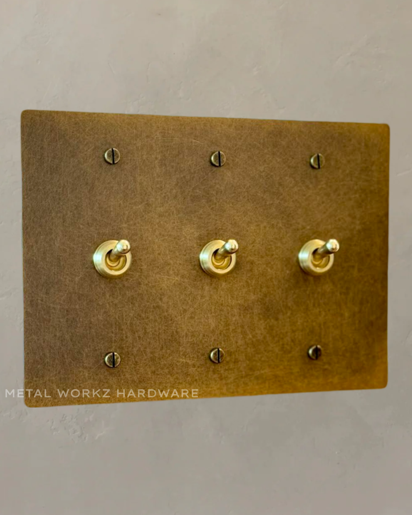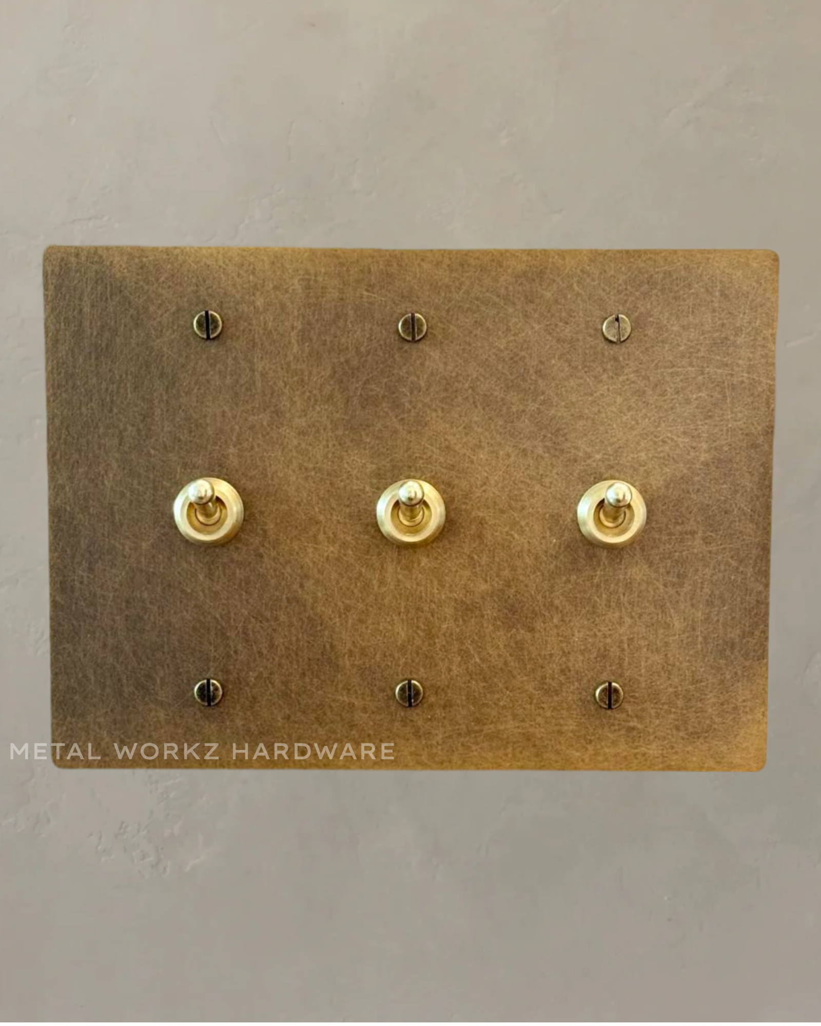 Brass Vintage Toggle Light Switch (3-Gang) Aged Patina Brass