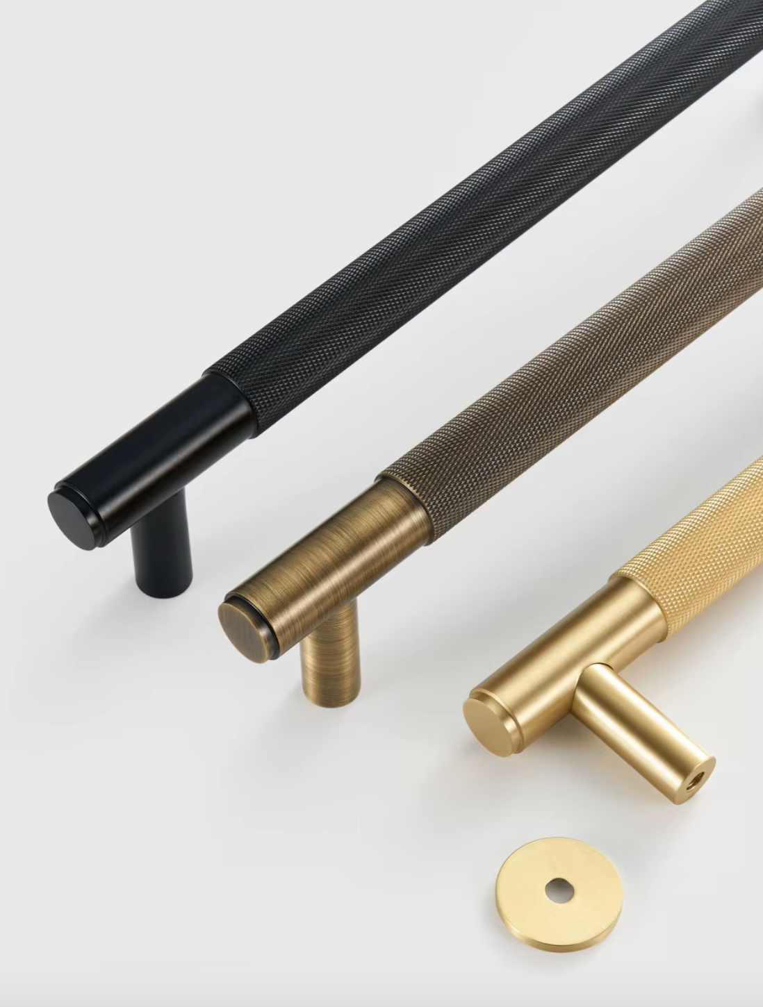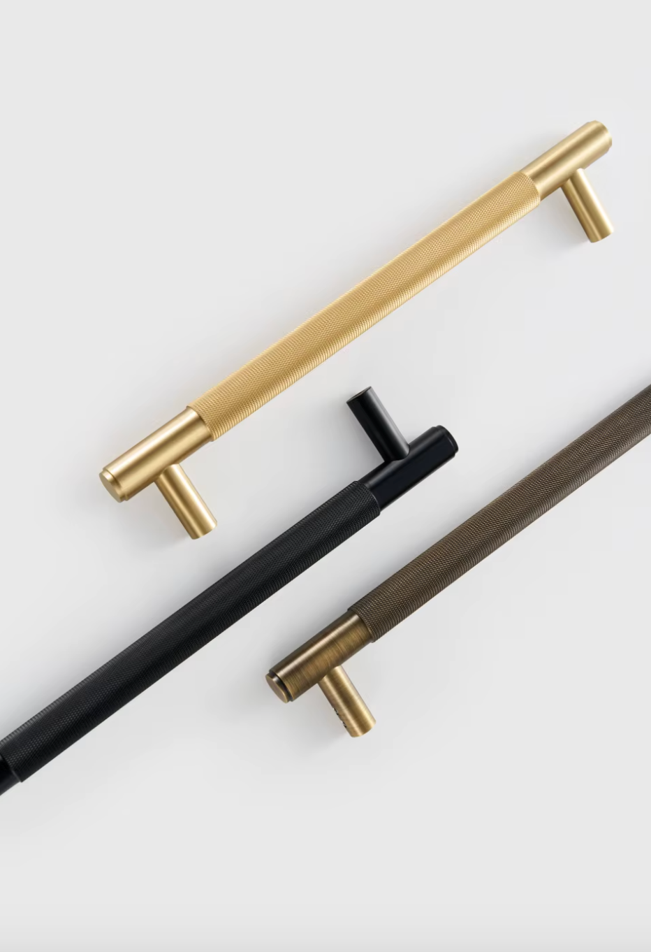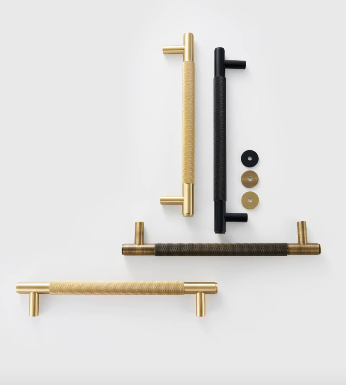 These handles work beautifully on dark surfaces for a rich and sumptuous feel. Alternatively place on light and bright surfaces for a sleek and modern touch. Available in three finishes: black, brass, and aged patina brass.