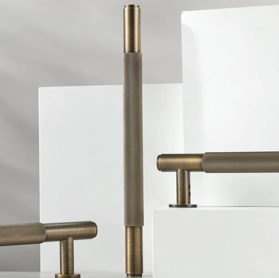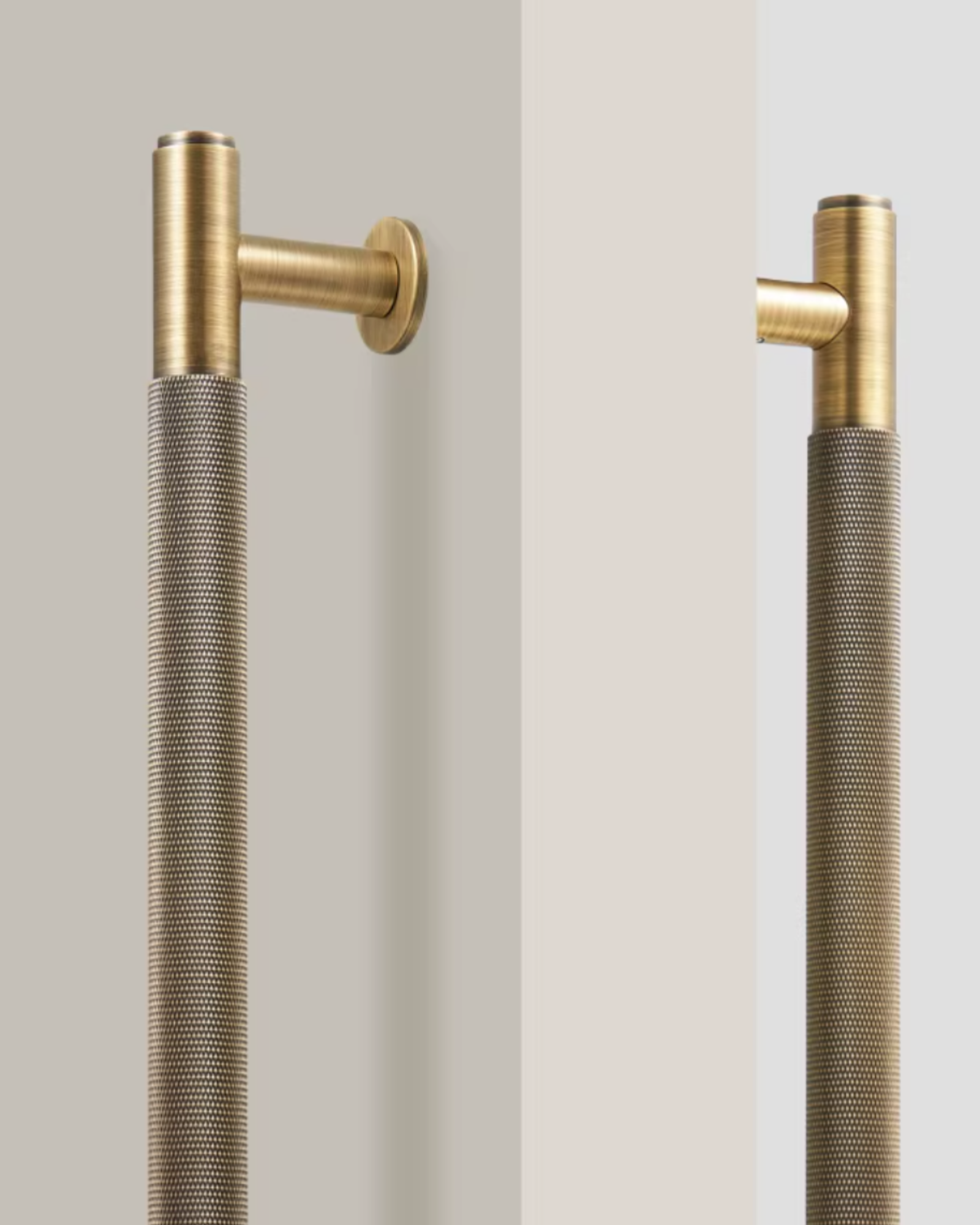 Indulge in our FORTE knurled brass pull door handles, some of our most striking brass handle designs.